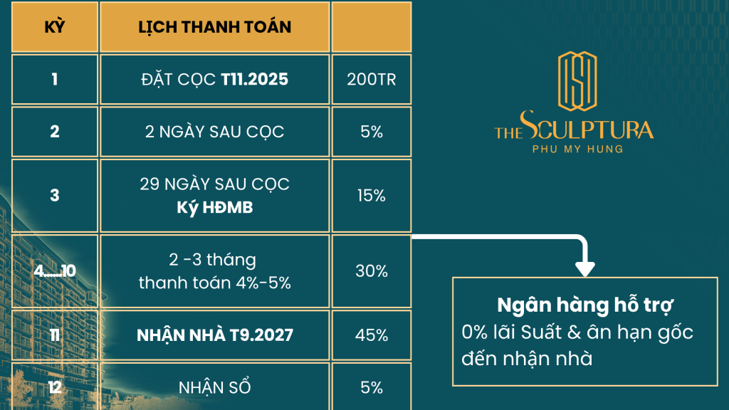 Dự án căn hộ The Sculptura trên đường Hà Huy Tập, Phú Mỹ Hưng, Quận 7 là một dự án căn hộ cao cấp đáng chú ý trong năm 2025. Với vị trí thuận lợi, thiết kế nghệ thuật, tiện ích đa dạng và chính sách bán hàng hấp dẫn, dự án hứa hẹn mang đến cho cư dân một cuộc sống đẳng cấp và cơ hội đầu tư sinh lời bền vững. Nếu bạn đang tìm kiếm một không gian sống lý tưởng tại khu vực phía Nam TP. Hồ Chí Minh, thì đây chắc chắn là lựa chọn không thể bỏ qua.
